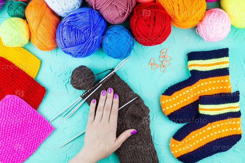 Девочка вяжет носок спицами