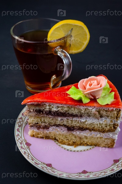 Чай лимон и пирожное