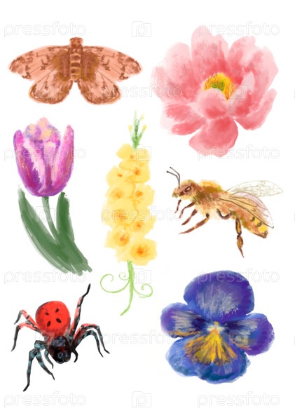 Цветы и насекомые стикеры
