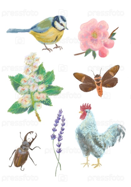 Птицы и насекомые стикерпак