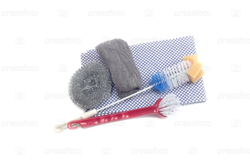 Кухонные принадлежности для уборки на столе крупным планом