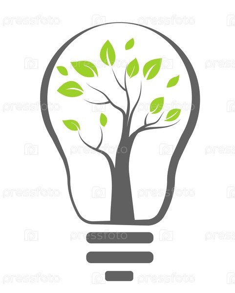 Креативная иллюстрация дерева внутри лампочки, символизирующая экологичные идеи и устойчивый образ жизни