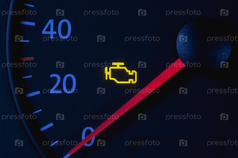Желтый значок проверки двигателя на приборной панели автомобиля, черный фон