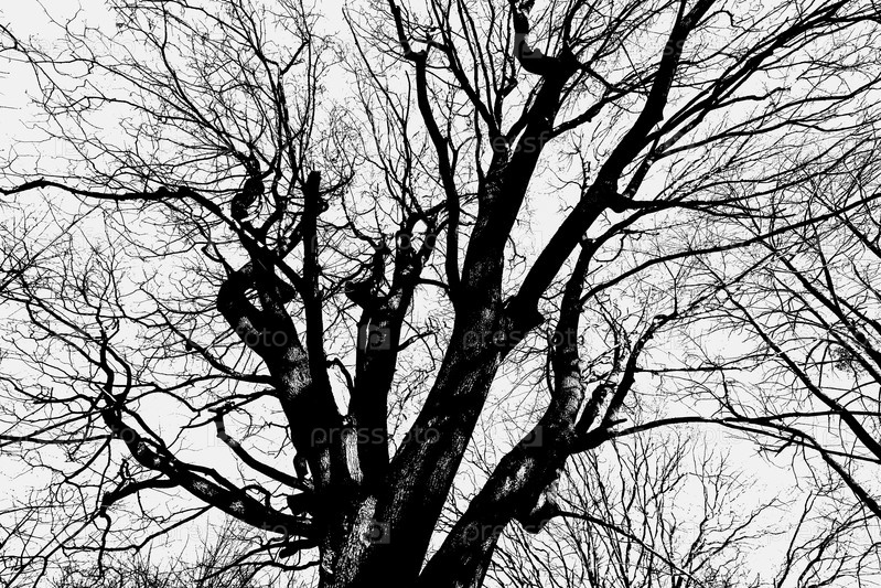 Черный силуэт ветвей большого дерева на белом фоне