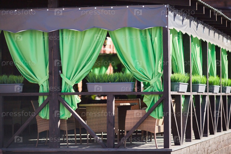 Зеленые занавески уличного кафе или террасы