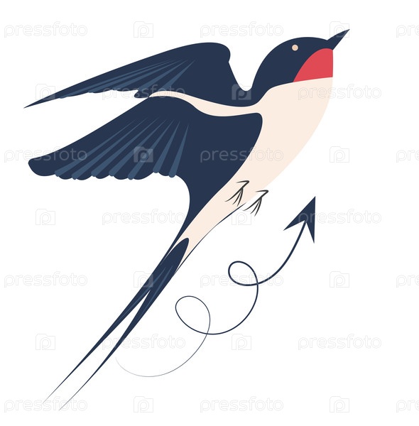 Красочная векторная иллюстрация ласточки в полете, поднимающейся с веселой энергией