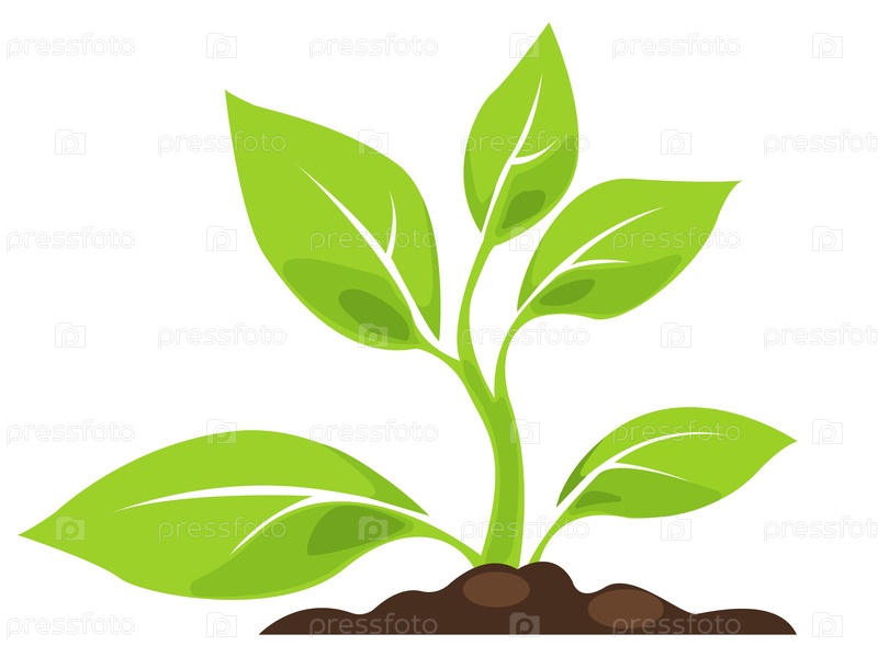 Иллюстрация растущего зеленого растения, представляющая природу и здоровье окружающей среды в простом векторном дизайне