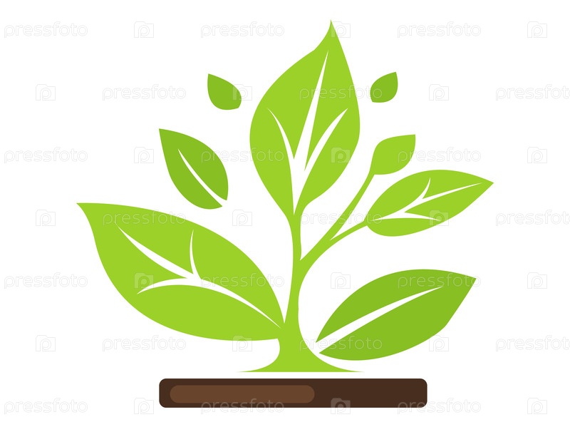 Векторная иллюстрация яркого зеленого растения со свежими листьями, растущего из коричневой почвы