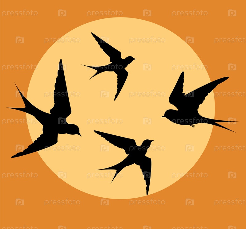 Силуэты птиц, летящих на фоне теплого заката, в стиле векторной иллюстрации