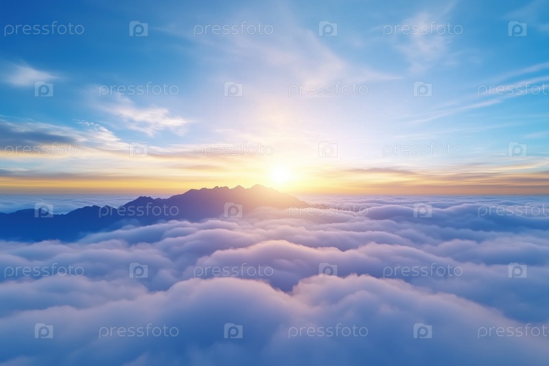 Красивый вид с воздуха над облаками на закате