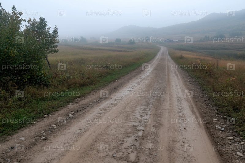 Проселочная дорога туманным утром