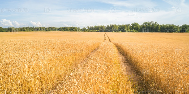 Поле желтой спелой пшеницы в солнечный день