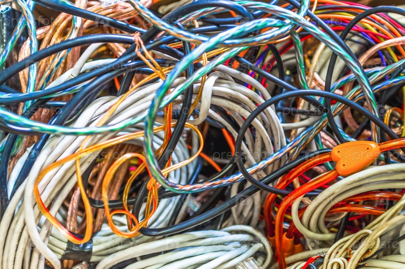 Много цветных проводов в куче, крупный план