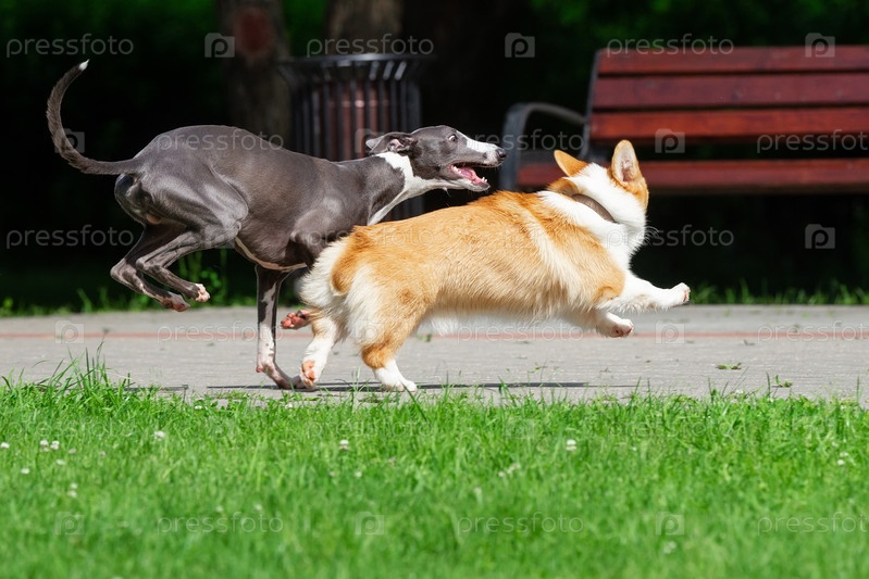 Борзая Грейхаунд и Корги