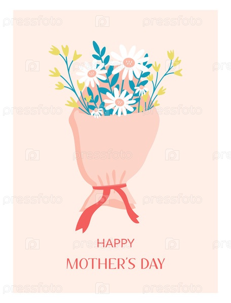 Шаблон поздравительной открытки ко Дню матери, нежный цветочный букет, векторный дизайн