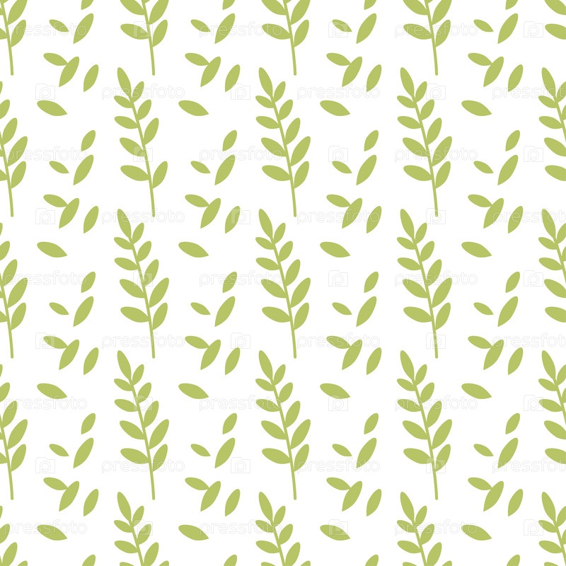 Бесшовный узор с зелеными листьями, свежей декоративной травой, весенним принтом