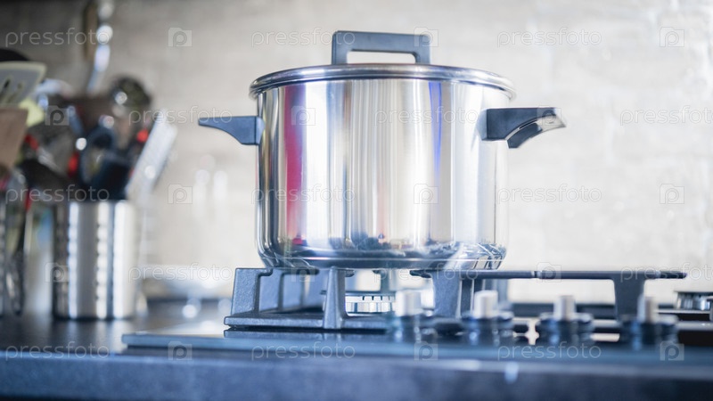 Кухонная газовая плита со стеклянной столешницей крупным планом