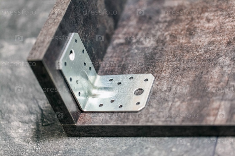 Сборка мебели, металлические уголки на мебельных деревянных панелях