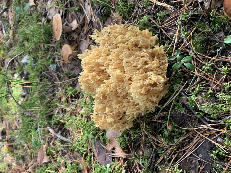 Гриб Рамария в лесу на мшистой почве