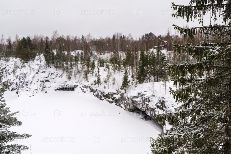 Зима в парке. Карелия Рускеальский заповедник зимой. В лесу идет снег