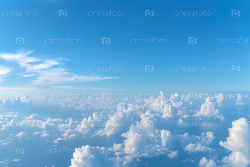 Голубое небо с кучевыми облаками, вид сверху