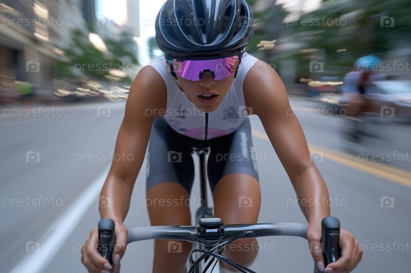 Велосипедистка принимает участие в велопробеге по улицам города