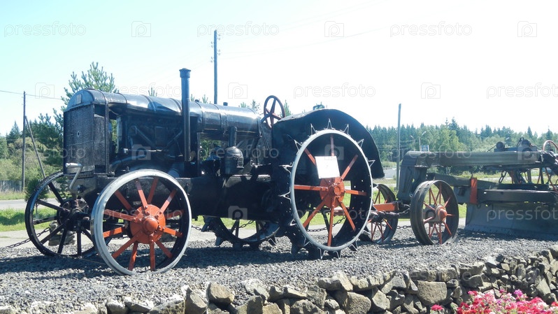 Советский прицепной грейдер с ручным управлением ГТМ и колесный советский трактор СХТЗ 15/30