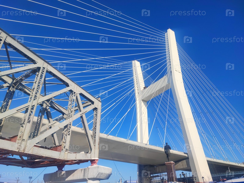 Центральный мост в городе Новосибирск. Башня или пилон с подвесными мостами на площади Инженера Будагова. The Central bridge in Novosibirsk. A tower or pylon with suspension bridges on Engineer Budagov Square