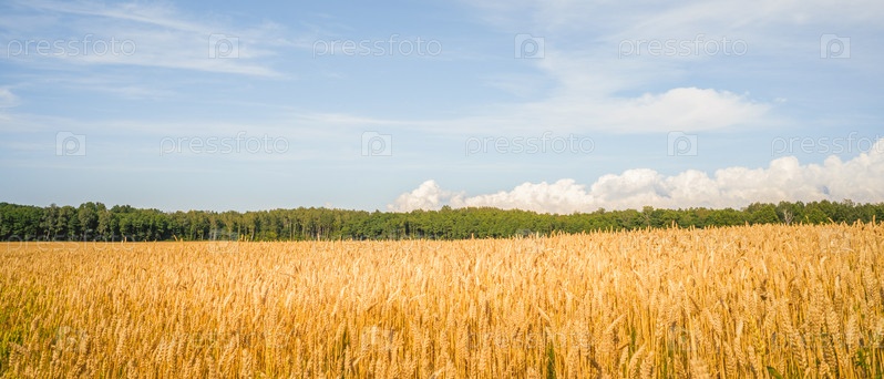 Поле желтой спелой пшеницы в солнечный день