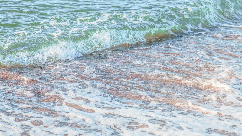 Кристально чистая лазурная вода с морской пеной, морской пейзаж на заднем плане