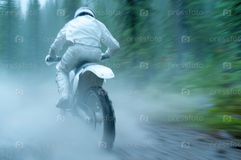 Мотоциклист на лесной дороге. Размытость изображения