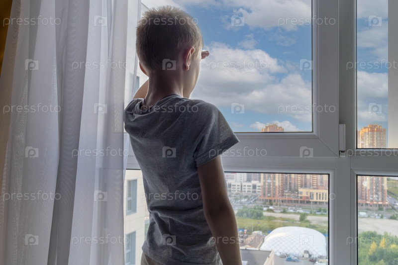 Мальчик смотрит в окно на город, мечтая о будущем. Самопознание в предподростковом возрасте