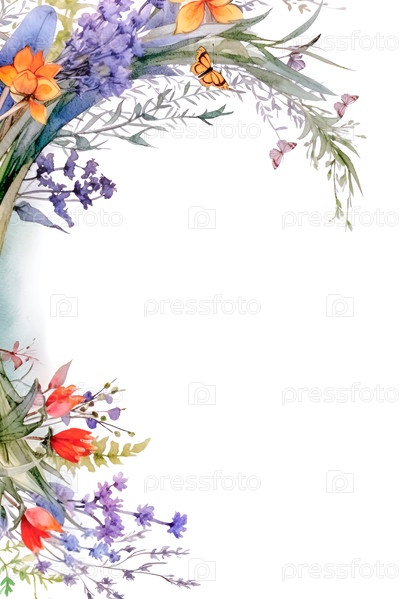 Рамка из акварельных весенних цветов на белом фоне