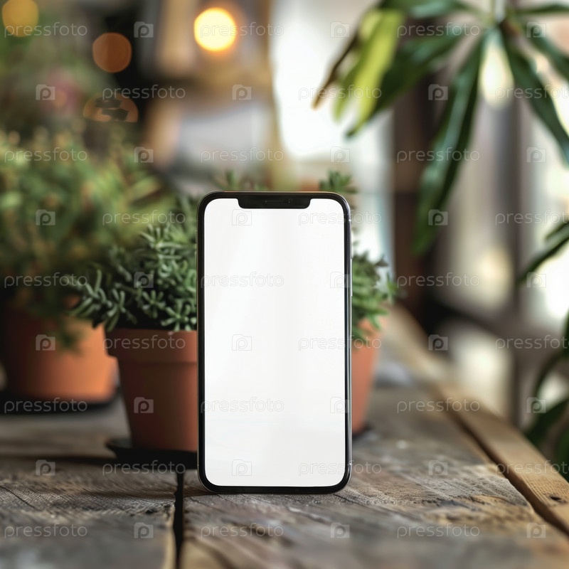 Смартфон с пустым экраном на размытом фоне