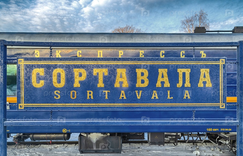 Табличка с названием Сортавалальского экспресса прибывает на станцию Горного парка «Рускеала»