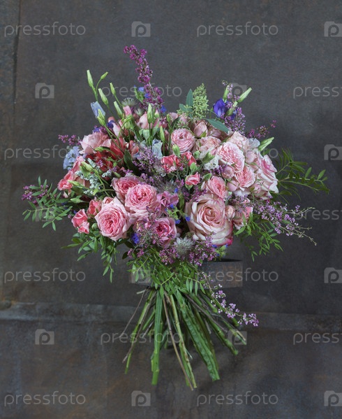 Букет из разных роскошных роз и других цветов. Флористический дизайн