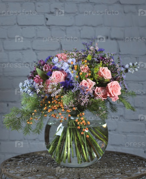Букет из разных роскошных цветов. Флористический дизайн