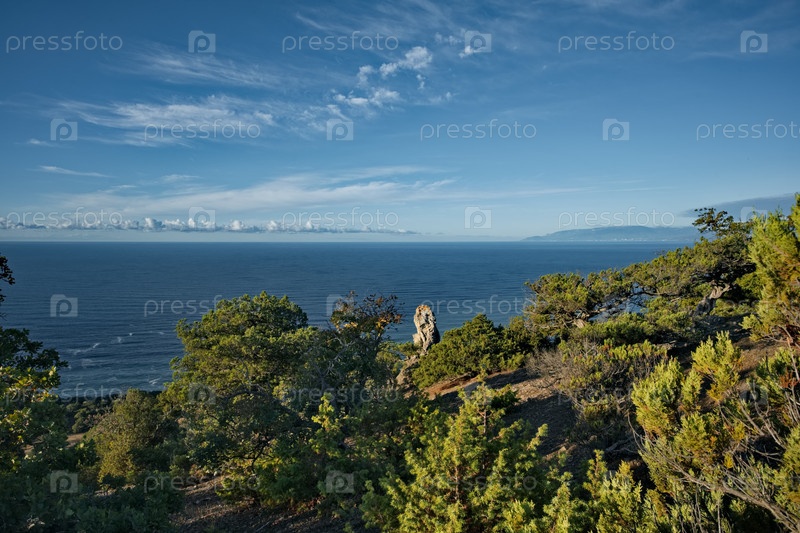 Россия, Новый Свет. Потрясающий рассветный вид с мыса Капчик на окружающую бухту Крымского полуострова