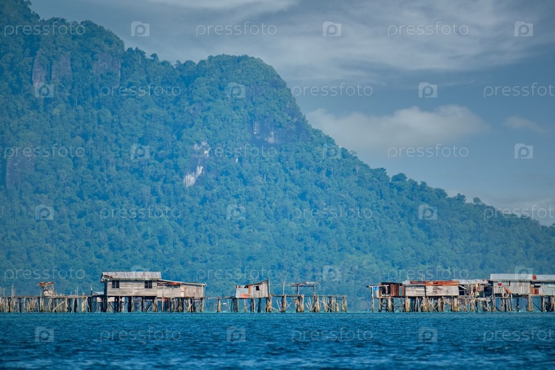 Восточная Малайзия. Деревня морских цыган на песчаном острове с коралловым рифом. Основным занятием местных жителей является рыбалка и морские сувениры