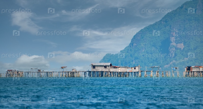 Восточная Малайзия. Деревня морских цыган на песчаном острове с коралловым рифом. Основным занятием местных жителей является рыбалка и морские сувениры