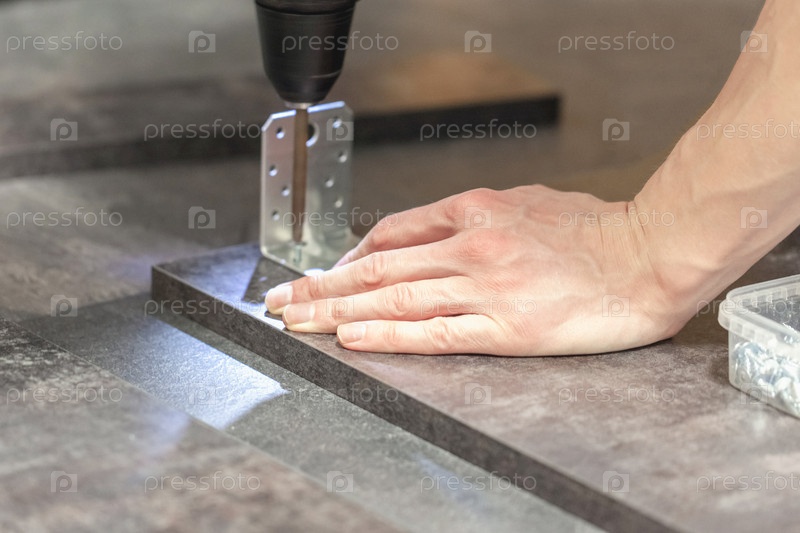 Мастер собирает деревянные панели с помощью отвертки