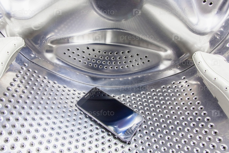 Выпавший из кармана одежды мобильный телефон находится внутри барабана стиральной машины