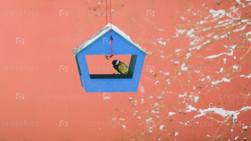 Птицы в кормушке холодным зимним днем