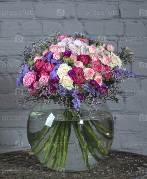 Букет из разных роскошных цветов. Флористический дизайн. Композиция из роз