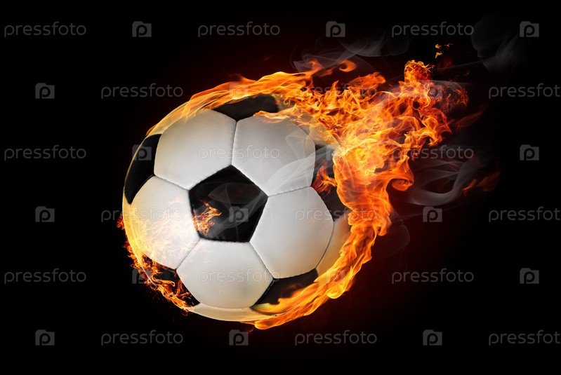 Летящий футбольный мяч в огне