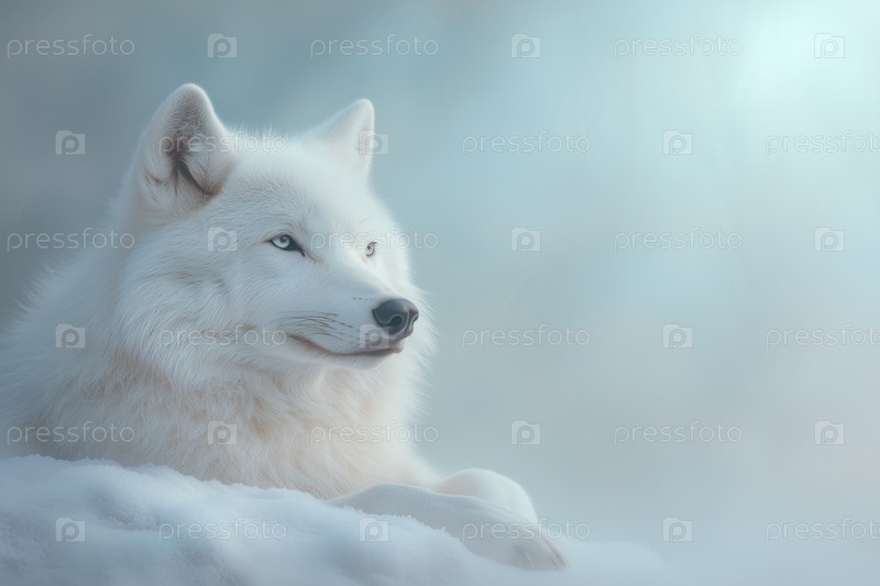 Портрет прекрасного белого волка в зимнем лесу