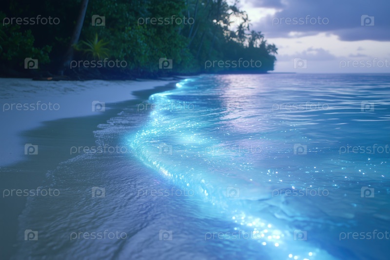Сверкающий прибой на тропическом пляже перед рассветом