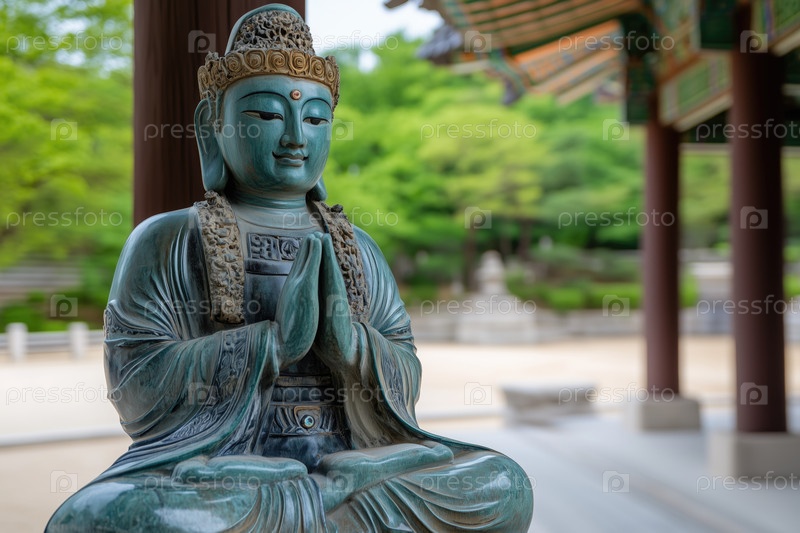 Статуя Будды на открытом воздухе в храмовом парке