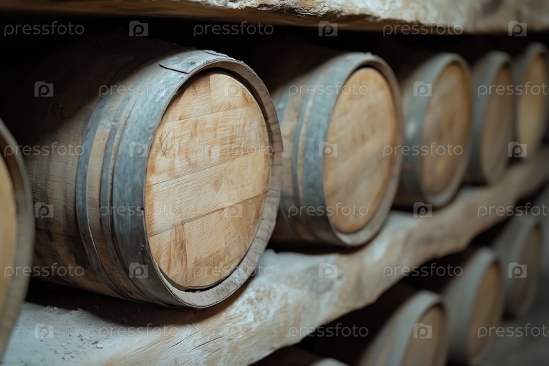 Старые винные бочки в погребе винодельни. Виноделие