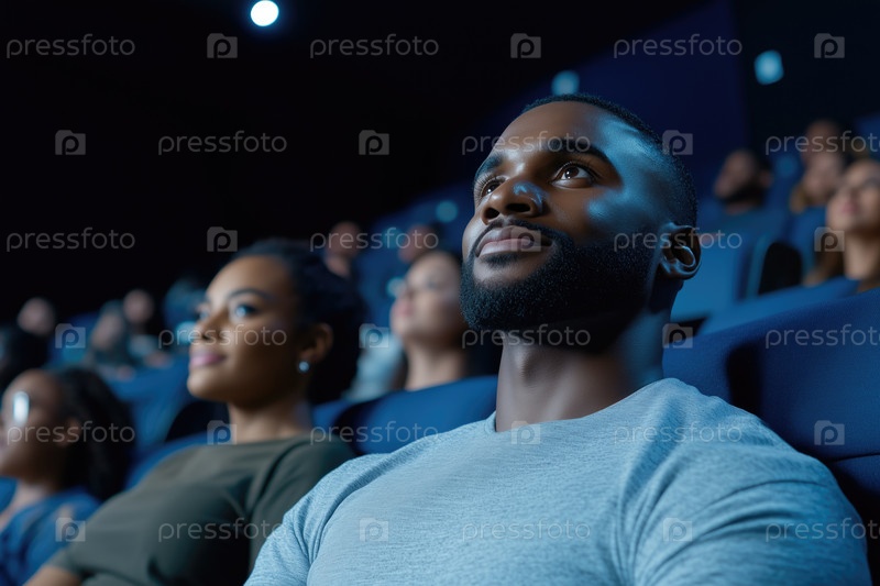 Молодой афроамериканец смотрит фильм в кинотеатре